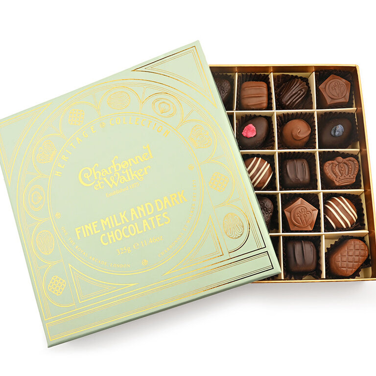 Dark Chocolate Falstaff, Milk Chocolate Rocher Noisettes, Milk and Dark Chocolate Lemon Coconut, Milk Chocolate Caramel Café and more. A striking gift box houses the perfect selection of decadent Charbonnel et Walker creations.