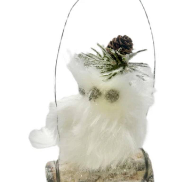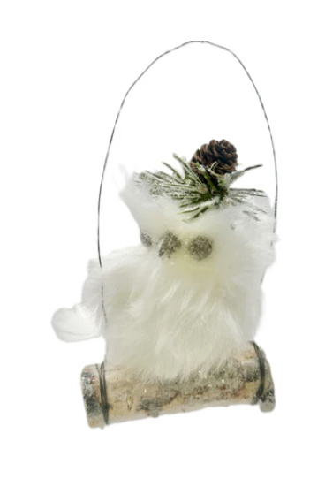 Owl on Log White Orn