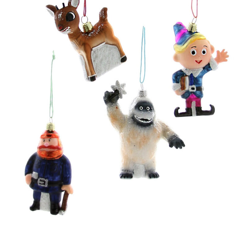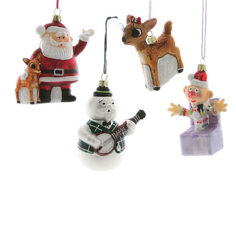 Retro Christmas character ornaments depicting beloved favorites. Set of 8