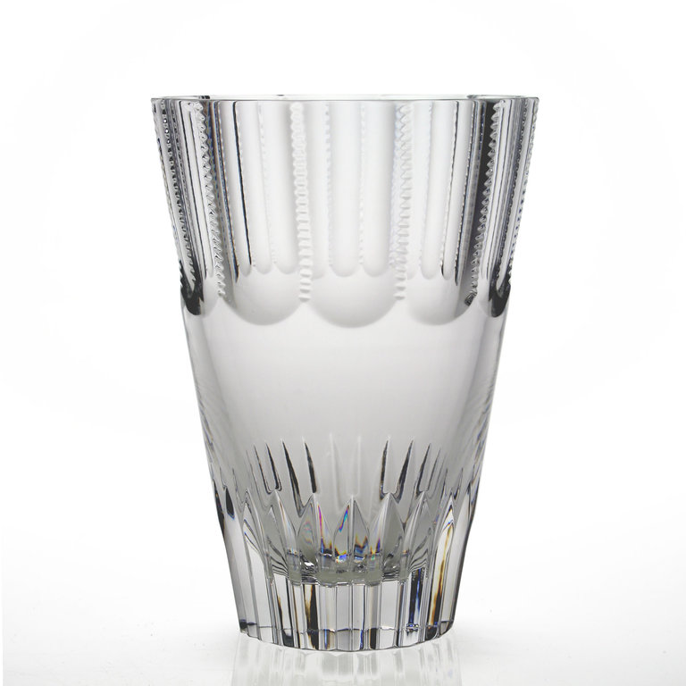 This is a perfect flower vase available in two sensible sizes - 7" and 10". Beautifully handmade with flat cuts and delicate notches running to the top of the vase. A stunning piece of classical yet contemporary crystal making.
